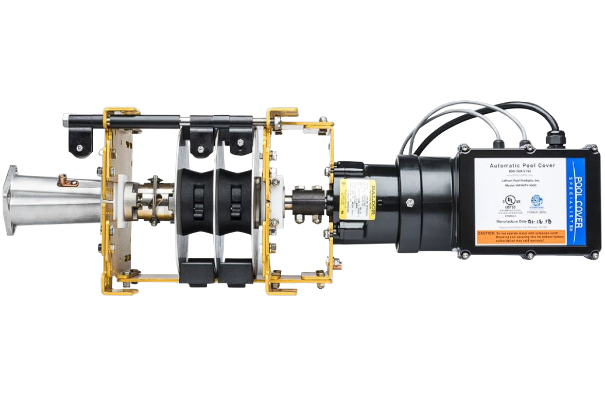 A mechanical torque limiter protects the motorized mechanism from too much stress. Other automatic covers often use an electronic torque limiter that can fail in the harsh pool environment.